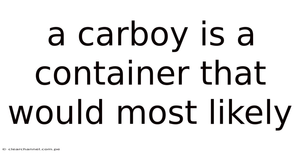 A Carboy Is a Container That Would Most Likely Be Found in a Brewery, Laboratory, or Preparedness Closet