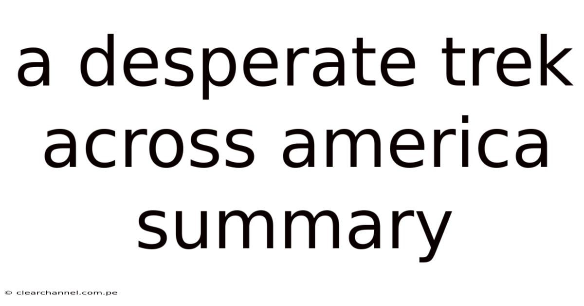The concept of a "desperate trek" across America is not confined to a single event but encompasses a series of migrations that have shaped the country's identity. From the westward expansion of the 19th century to the Dust Bowl migrations of the 1930s, and even the modern-day struggles of immigrants crossing borders, these journeys reflect the enduring quest for a better life That's the part that actually makes a difference..