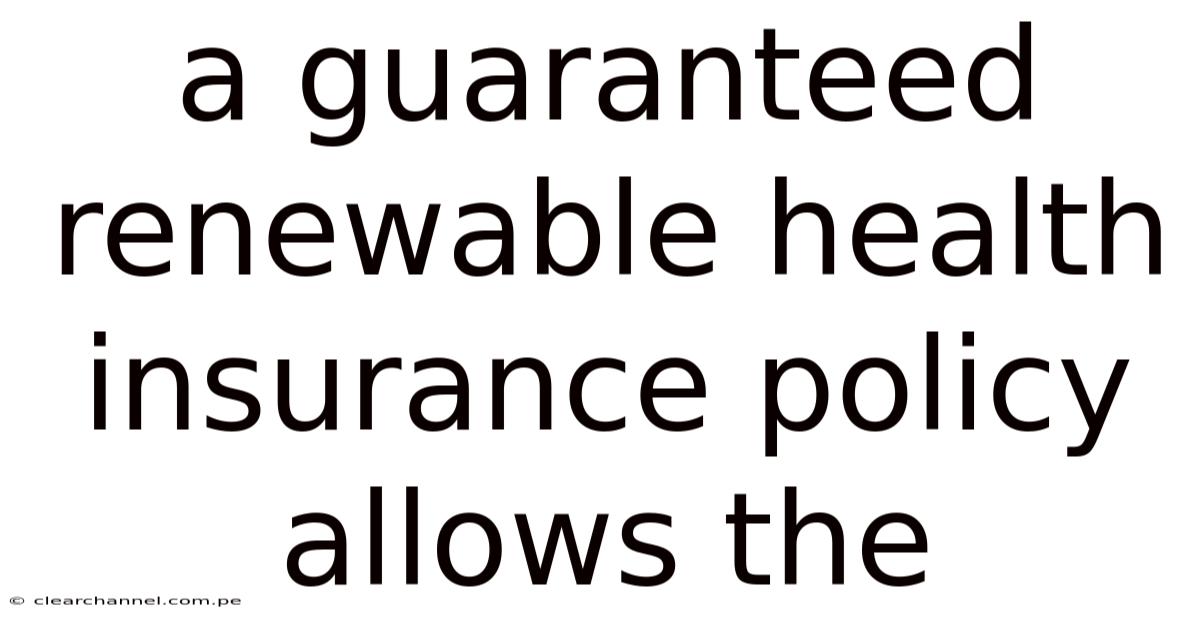 A Guaranteed Renewable Health Insurance Policy Allows The