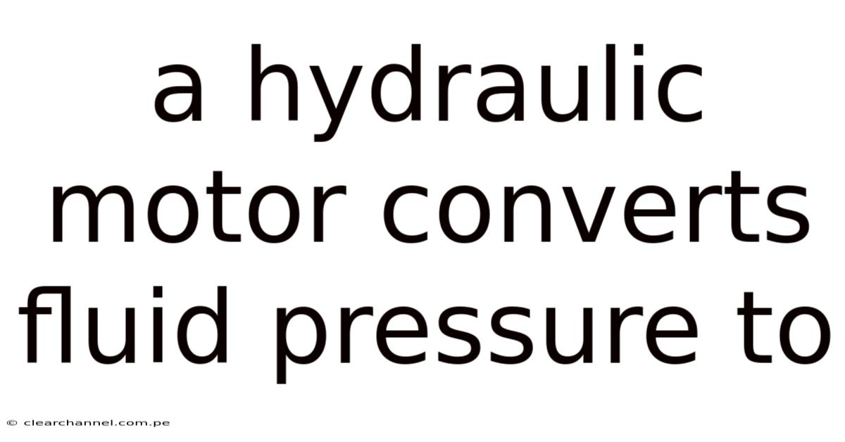 How a Hydraulic Motor Converts Fluid Pressure to Mechanical Energy
