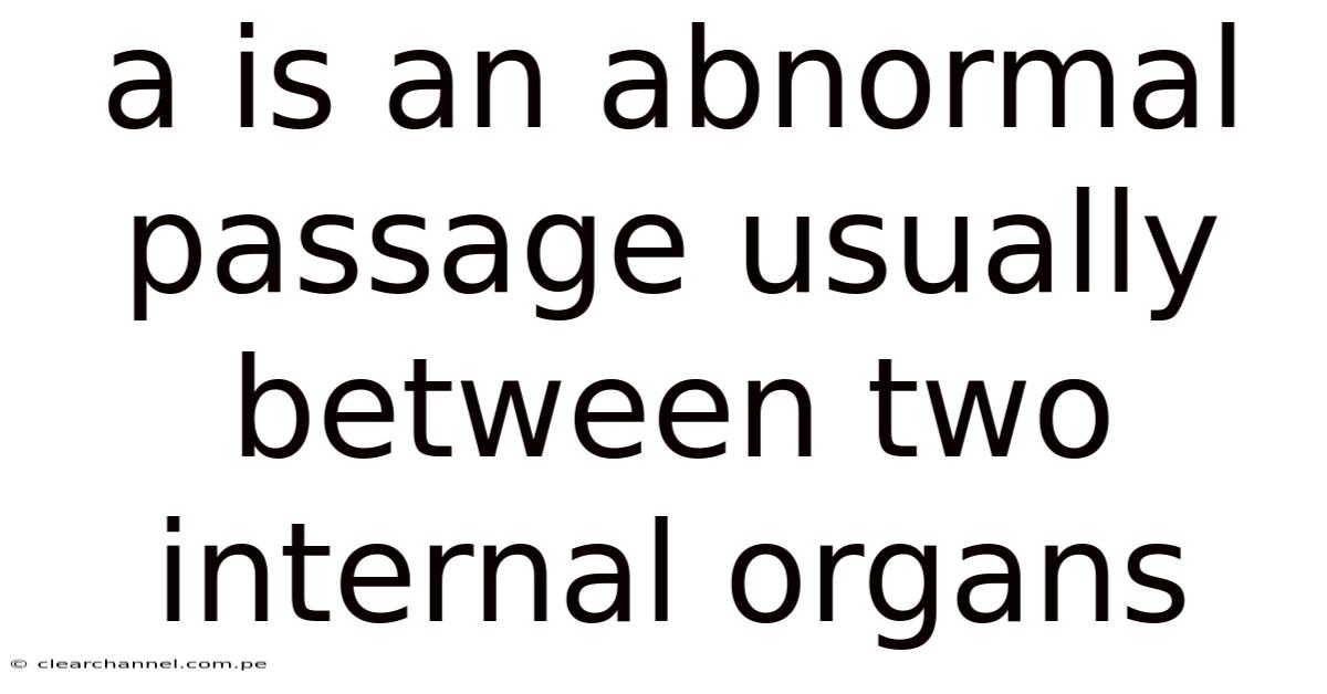 A Fistula: An Abnormal Passage BetweenInternal Organs