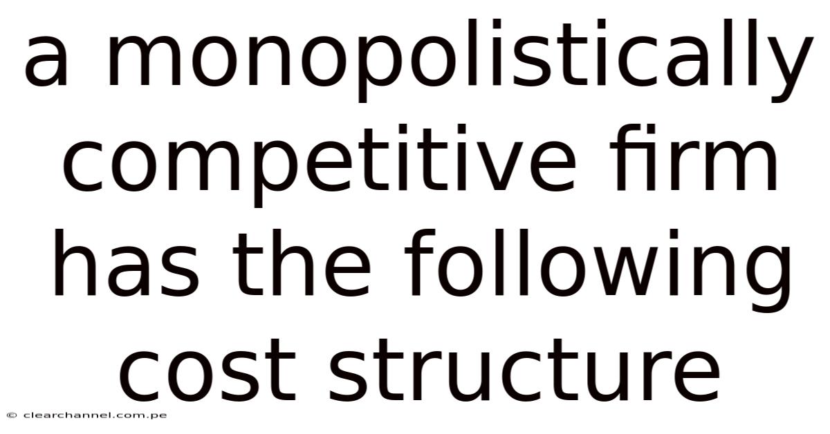 A monopolistically competitive firm has thefollowing cost structure that determines its output decisions, pricing power, and long‑run viability. Understanding how fixed and variable costs interact with market demand helps students and professionals alike grasp why such firms can earn zero economic profit in equilibrium yet continue to operate. This article walks through the cost framework, analyzes short‑run and long‑run behavior, and answers common questions in a clear, step‑by‑step manner.