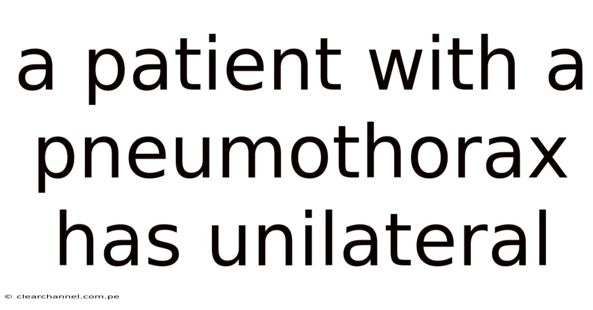 The term "unilateral" distinguishes this condition from bilateral pneumothorax, where both lungs are affected simultaneously. Unilateral pneumothorax is significantly more common and typically presents with more recognizable symptoms due to the asymmetric nature of the collapse Small thing, real impact. That alone is useful..
