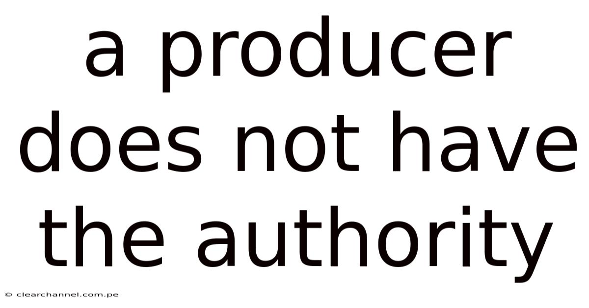 The concept of a producer lacking authority is a nuanced and often misunderstood topic, particularly in industries where the role of a producer is central to project execution. Here's the thing — this limitation raises critical questions about the balance of power, decision-making processes, and the expectations placed on producers in various contexts. Day to day, while producers are typically seen as key figures responsible for overseeing the creation of content, products, or services, their actual authority can be constrained by organizational structures, external stakeholders, or internal policies. Understanding why a producer might not have the authority they expect is essential for professionals navigating complex environments, whether in film, manufacturing, or business And it works..