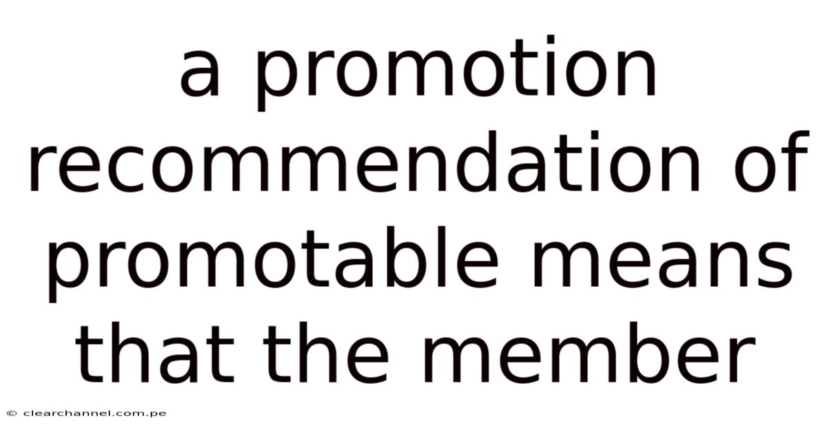 A Promotion Recommendation Of Promotable Means That The Member