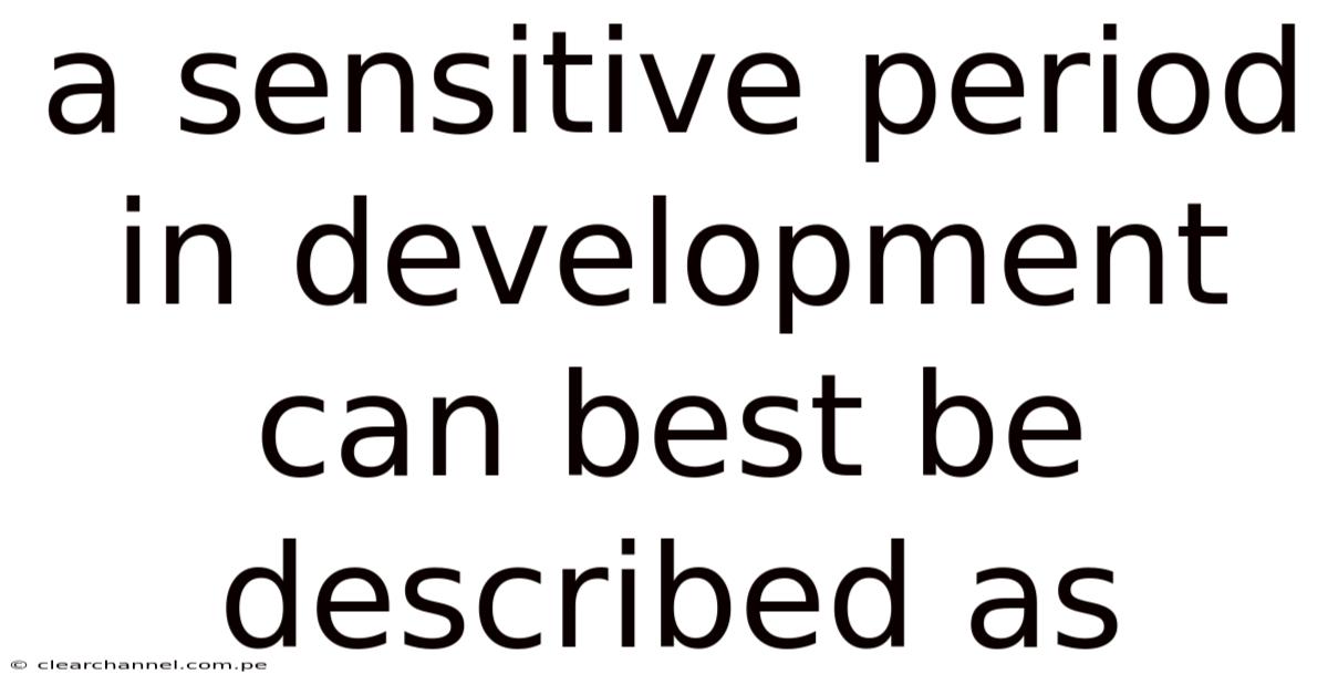 A sensitive period in development can best be described as a specific time frame during which an individual is particularly receptive to certain environmental stimuli, which can significantly influence their learning and growth. The term highlights the idea that certain skills, behaviors, or traits are more easily acquired or shaped during these windows of heightened sensitivity. Unlike rigid critical periods, which are strictly time-bound and irreversible, sensitive periods are more flexible, allowing for some degree of learning or development outside of them, though with reduced efficiency. That said, this concept is rooted in developmental psychology and emphasizes the interplay between biological maturation and external experiences. So for instance, a child’s ability to learn a language or develop social skills may be most pronounced during early childhood, making this period a key moment in their overall development. Understanding sensitive periods is crucial for parents, educators, and caregivers, as it underscores the importance of providing appropriate stimuli and support during these times to encourage optimal growth Most people skip this — try not to..