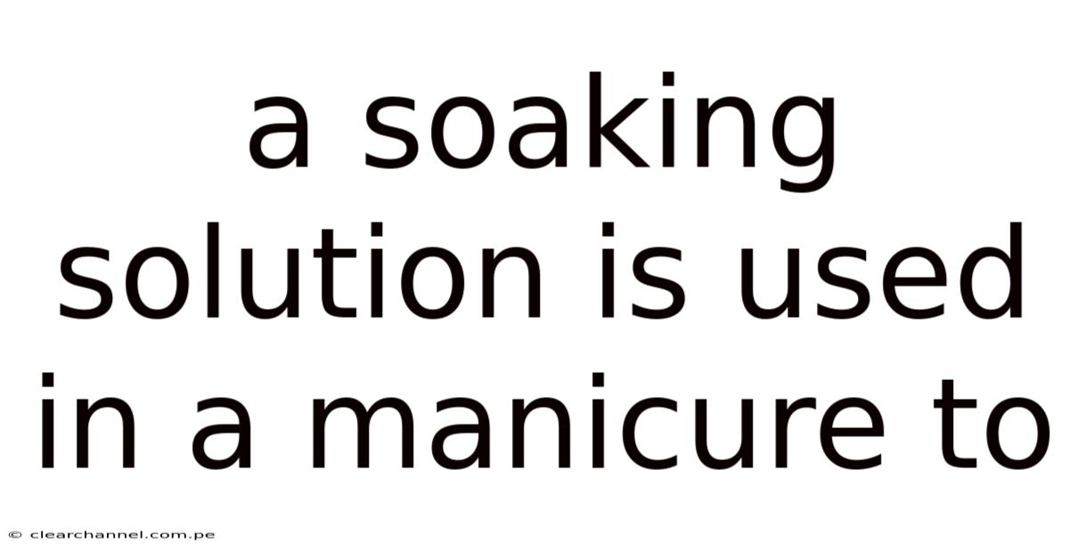 A soaking solution is used in a manicure to soften cuticles, cleanse the nail bed, and prepare your hands for a flawless, long-lasting finish. In practice, whether you are visiting a professional salon or treating yourself to a relaxing at-home session, this essential step transforms rough, dry skin into smooth, hydrated canvases ready for polish or treatment. Understanding how and why this simple liquid mixture works can elevate your nail care routine from ordinary to exceptional Not complicated — just consistent..