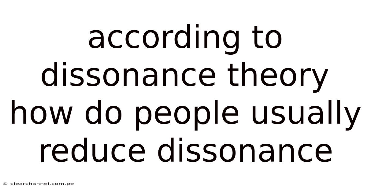 According to Dissonance Theory, people usually reduce dissonance by altering their cognitions, changing their behavior, or adding new justifying beliefs to create internal harmony. Cognitive dissonance is the psychological discomfort experienced when an individual holds two or more contradictory beliefs, values, or attitudes, or when their behavior conflicts with their beliefs. Here's the thing — this tension acts as a motivational force, prompting individuals to restore a sense of consistency and reduce the aversive feeling of dissonance. The mechanisms through which people achieve this reduction are varied and deeply rooted in the way we process information and protect our self-image Simple, but easy to overlook. But it adds up..