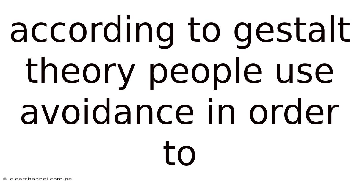 According to Gestalt Theory, people use avoidance in order to maintain psychological balance and protect themselves from uncomfortable emotions or experiences. In practice, gestalt psychology, founded by Fritz Perls, emphasizes the importance of understanding the whole person and their experiences rather than breaking them down into isolated parts. This holistic approach to human behavior and perception provides valuable insights into why individuals resort to avoidance as a coping mechanism And that's really what it comes down to..