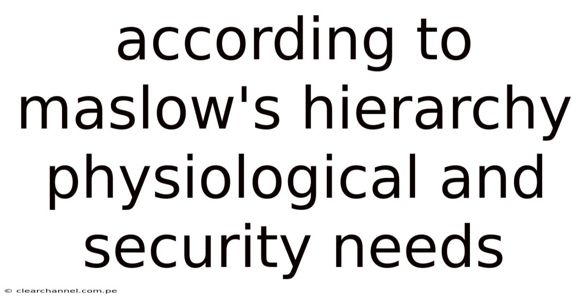 According To Maslow's Hierarchy Physiological And Security Needs