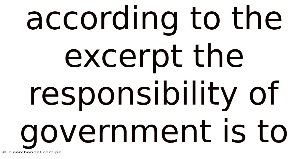 According To The Excerpt The Responsibility Of Government Is To