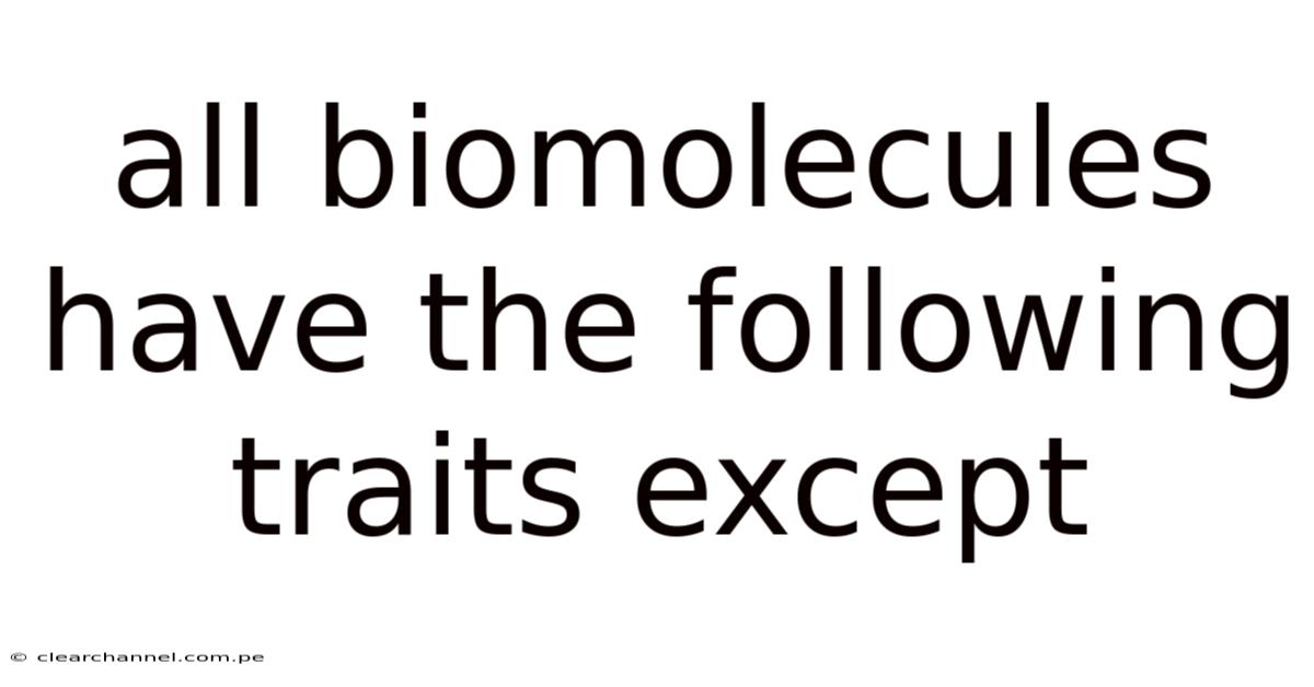 In the involved world of biology, biomolecules play a crucial role in the functioning and survival of all living organisms. Each biomolecule has unique characteristics and functions that are essential for the proper functioning of cells and organisms. On the flip side, despite their importance, not all biomolecules share the same traits. So these molecules, which include proteins, nucleic acids, carbohydrates, and lipids, are the building blocks of life. In this article, we will explore the common traits of biomolecules and identify what sets them apart from one another Most people skip this — try not to..
