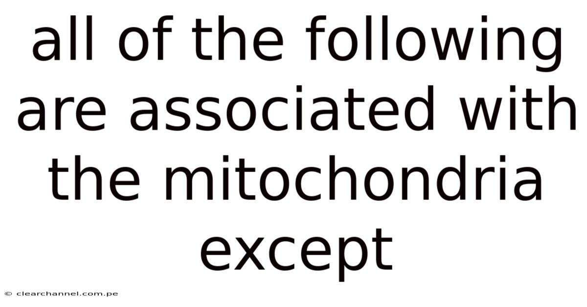 All of the Following Are Associated with the Mitochondria Except: A Deep Dive into Cellular Organelles