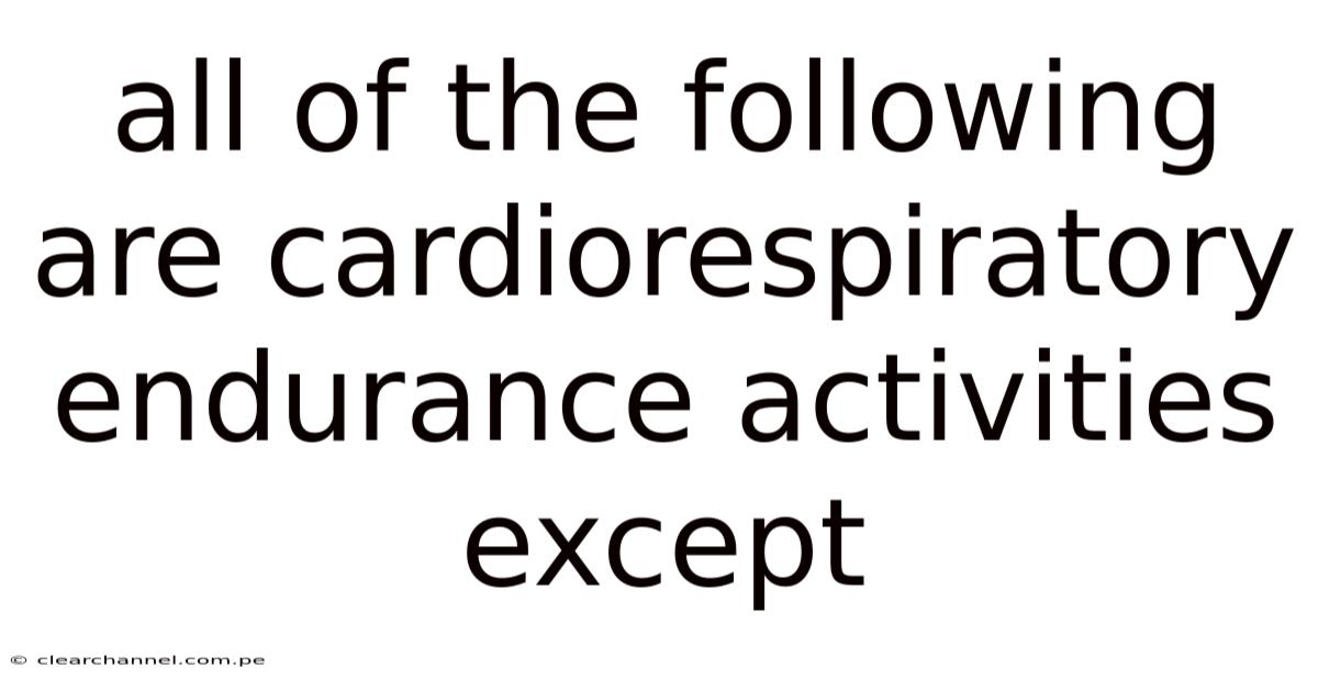 Cardiorespiratory endurance (CRE) is the ability of the heart, lungs, and blood vessels to supply oxygen to working muscles during prolonged physical activity. This article explores the exceptions—activities that do not qualify as cardiorespiratory endurance activities. Because of that, it is a key component of overall fitness and is essential for activities that require sustained effort, such as running, swimming, or cycling. That said, not all exercises or activities contribute to improving CRE. Understanding these exceptions helps clarify the distinction between aerobic and anaerobic exercises and highlights the importance of choosing the right type of physical activity for fitness goals Still holds up..