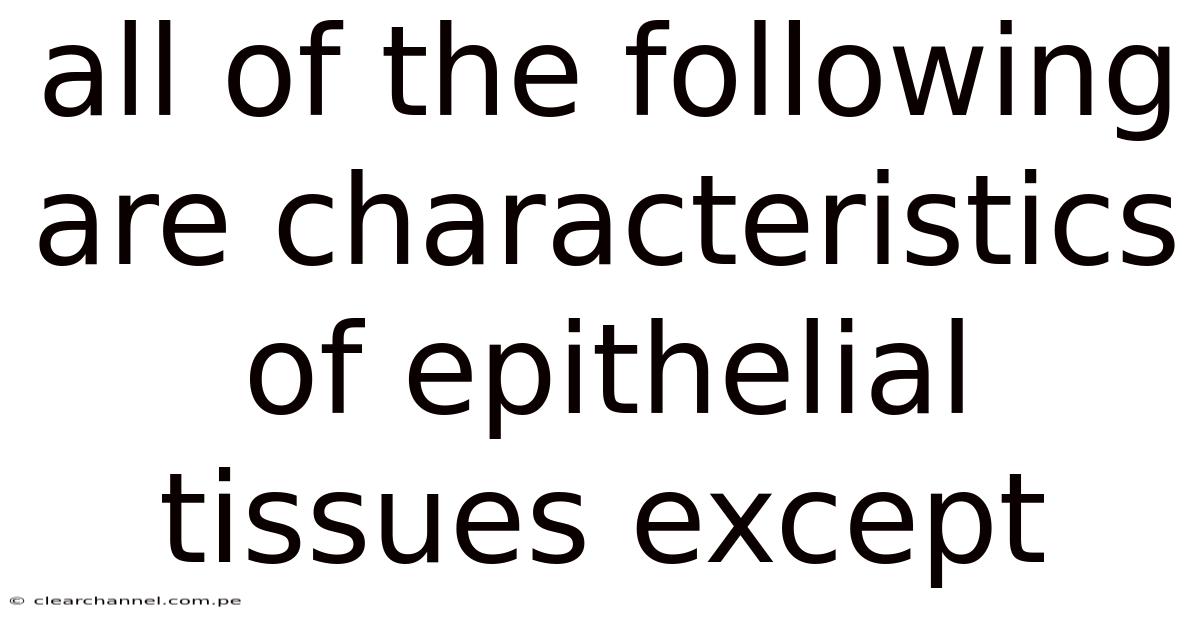 Epithelial tissues are one of the four primary tissue types in the human body, playing critical roles in protection, secretion, absorption, and sensation. While their functions and structures are well-defined, certain characteristics are often confused with those of other tissue types. In real terms, these tissues form continuous sheets that cover body surfaces, line cavities and organs, and constitute glands. Understanding what defines epithelial tissues—and what does not—is essential for grasping their role in human biology. This article explores the key features of epithelial tissues and identifies the exception among them, supported by scientific explanations and examples.