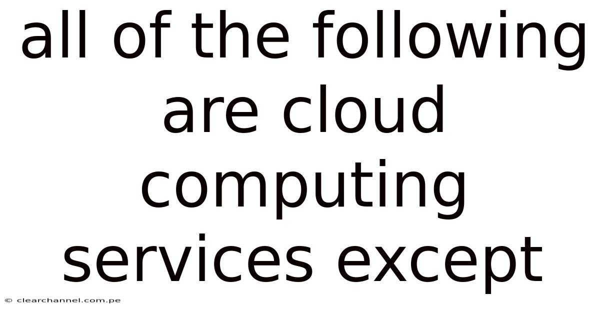 All of the following are cloud computingservices except a common exam‑style question that tests whether learners can distinguish genuine cloud offerings from on‑premise or hybrid solutions. This article unpacks the concept, walks through the typical categories of cloud services, and highlights the one option that does not belong in the cloud ecosystem. By the end, readers will have a clear mental map of what qualifies as a cloud service and why the outlier is fundamentally different.