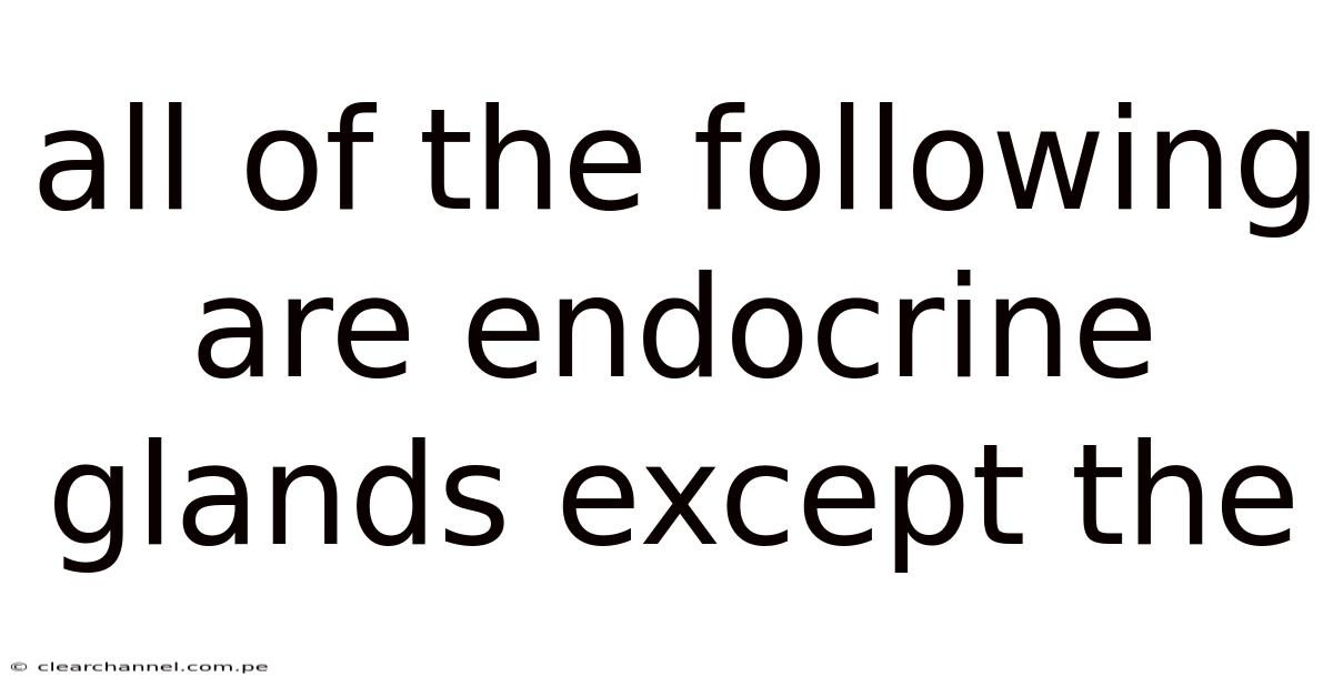 The human body relies on a sophisticated network of glands that release chemical messengers called hormones. On top of that, these endocrine glands regulate metabolism, growth, reproduction, and many other vital processes. Worth adding: in anatomy and physiology courses, students often encounter questions such as “All of the following are endocrine glands except …” Understanding why a particular organ is excluded requires more than memorization—it demands a clear grasp of the defining features of endocrine tissue, the functions of each gland, and the distinctions between endocrine and exocrine secretions. This article explores the criteria that classify a structure as an endocrine gland, reviews the major endocrine organs, examines common distractors in “except” questions, and provides a systematic approach to answering them correctly The details matter here..