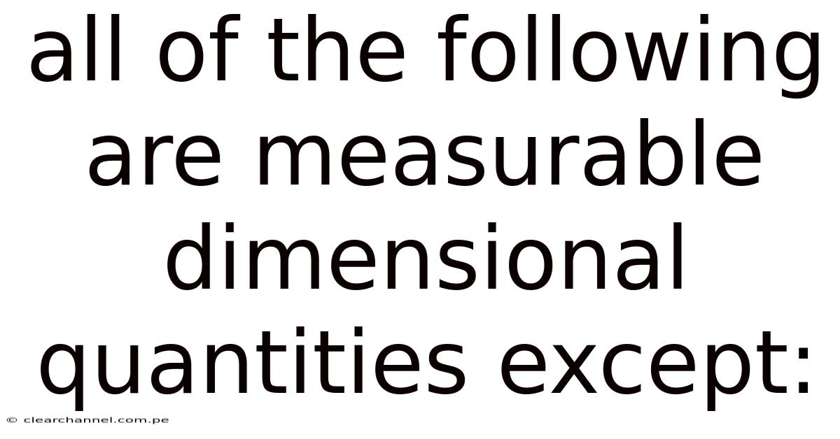 In physics and engineering, the ability to categorize and quantify the world around us is fundamental. We describe everything from the swing of a pendulum to the flow of electricity using physical quantities. Even so, not all quantities are created equal in terms of their fundamental nature. A critical distinction exists between dimensional quantities, which possess inherent physical dimensions like length, mass, or time, and dimensionless quantities, which are pure numbers representing ratios or counts. The statement "all of the following are measurable dimensional quantities except" is a classic test of this understanding, probing whether you can recognize the outlier that lacks its own independent dimension. Practically speaking, mastering this concept is essential for accurate dimensional analysis, a powerful tool for checking equations, converting units, and deriving relationships between physical variables. This article will demystify dimensional quantities, explore common examples, and clearly identify what makes a quantity not a measurable dimensional one.