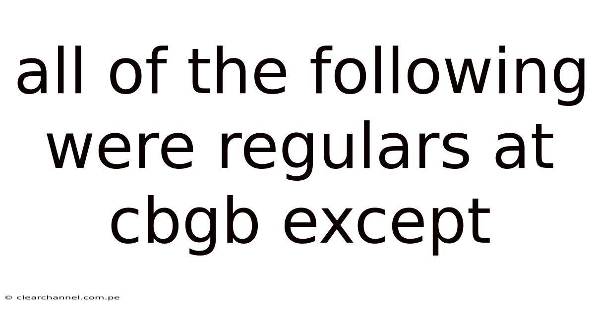 Moreover, the question all of the following were regulars at cbgb except serves as a pedagogical tool. It invites newcomers to explore the club’s history, research each band’s connection to CBGB, and appreciate the interconnectedness of the punk scene. By dissecting the answer, learners gain insight into how venue dynamics shape musical movements, a lesson that resonates with any cultural phenomenon—from hip‑hop cyphers to indie art collectives.