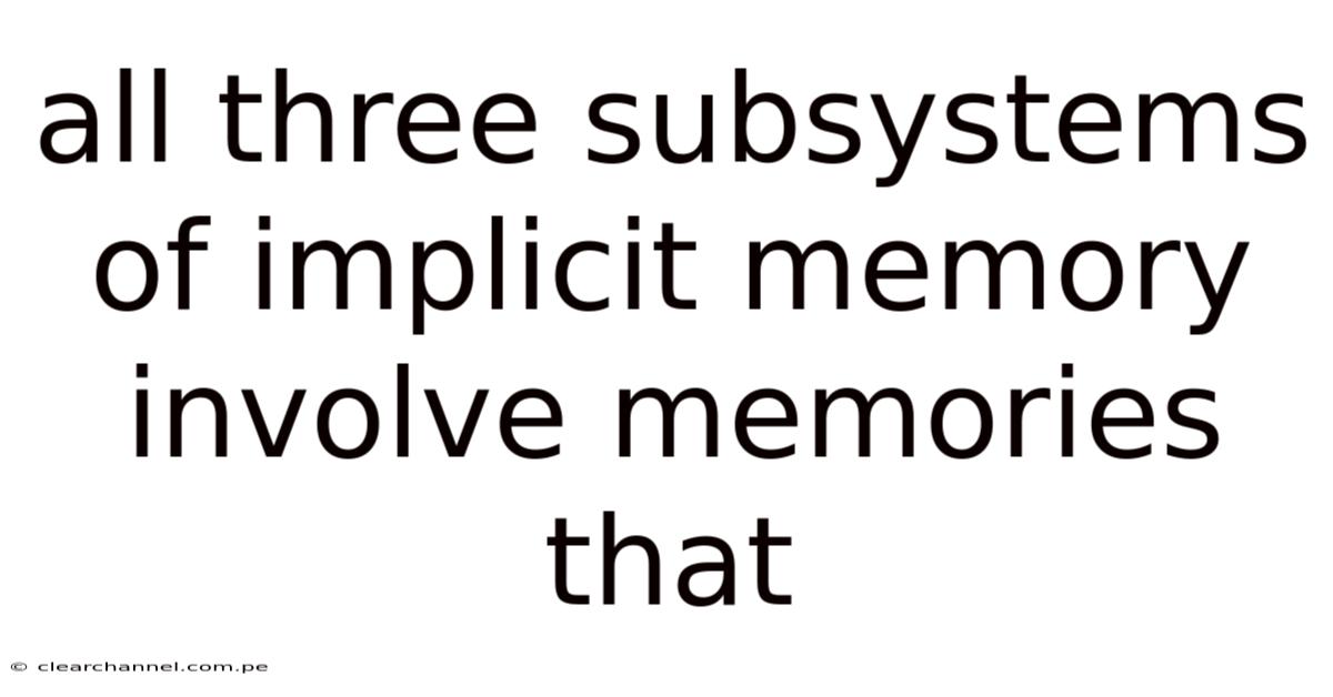 All Three Subsystems of Implicit Memory Involve Memories That Shape Our Behavior Without Conscious Awareness