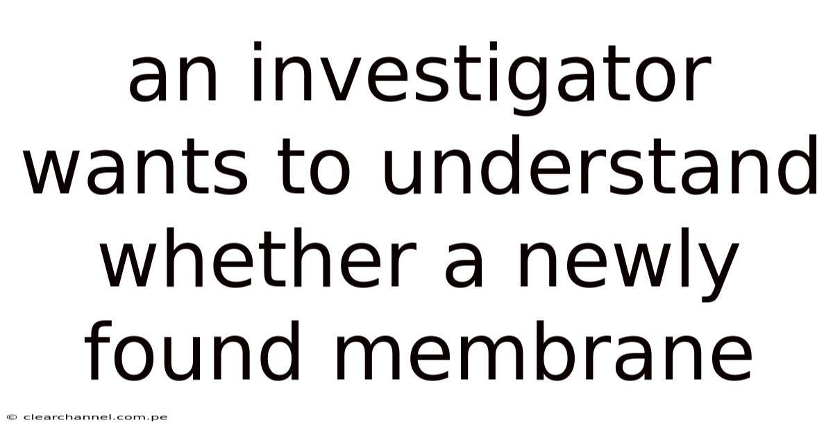 An Investigator Wants To Understand Whether A Newly Found Membrane