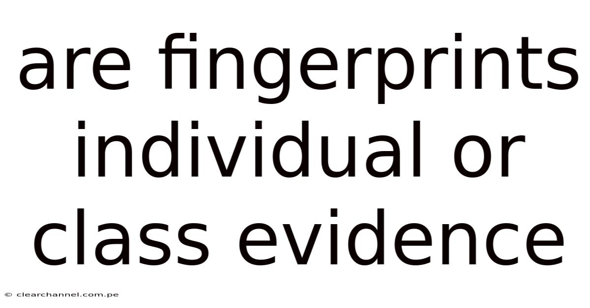 Despite their individual nature, fingerprints are also categorized as class evidence in certain contexts. On top of that, for example, in some forensic analyses, fingerprints are compared to a database of known prints to identify patterns or similarities. While this process is not about proving individual identity but rather about matching or comparing prints, it highlights the broader role of fingerprints in identification systems The details matter here..