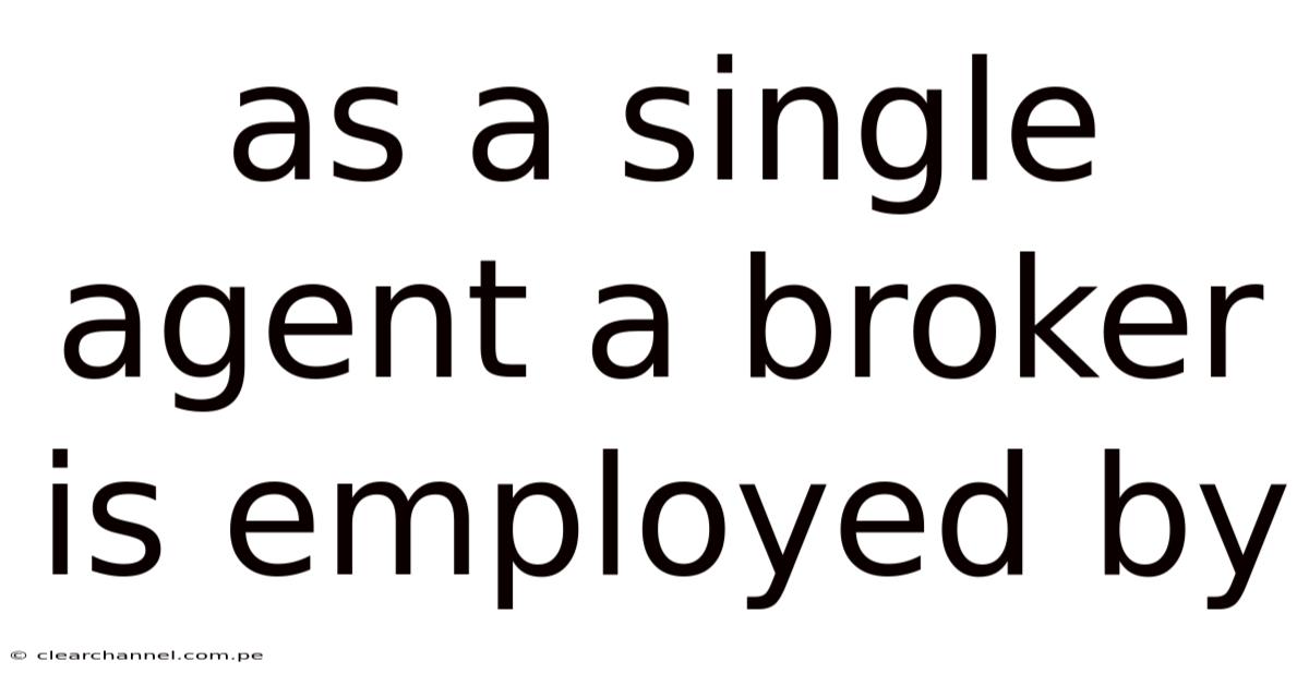 In the world of real estate, the phrase “as a single agent a broker is employed by” often sparks confusion among newcomers and seasoned professionals alike. In real terms, at its core, this statement addresses the employment relationship that exists when a broker works exclusively for one brokerage firm, rather than operating independently or sharing commissions with multiple agencies. Grasping this dynamic is essential for anyone considering a career in real estate, evaluating brokerage options, or simply trying to understand how transactions are structured behind the scenes. This article unpacks the legal, financial, and practical implications of a single‑agent broker’s employment, outlines the steps to become one, explains the underlying regulatory framework, and answers common questions that arise for agents, brokers, and clients alike.