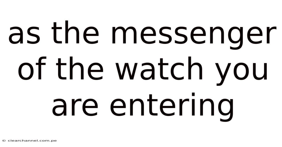 Imagine a world where time is not just a linear progression of seconds and minutes but a living entity, a silent guardian that whispers secrets to those who listen. In this realm, the phrase “as the messenger of the watch you are entering” takes on profound significance. That's why it speaks to the idea of being entrusted with a sacred duty—to observe, to interpret, and to guide others through the nuanced dance of time itself. Whether this phrase originates from a mystical tradition, a philosophical text, or a metaphorical framework, its essence resonates with themes of awareness, responsibility, and the unseen forces that shape our existence.