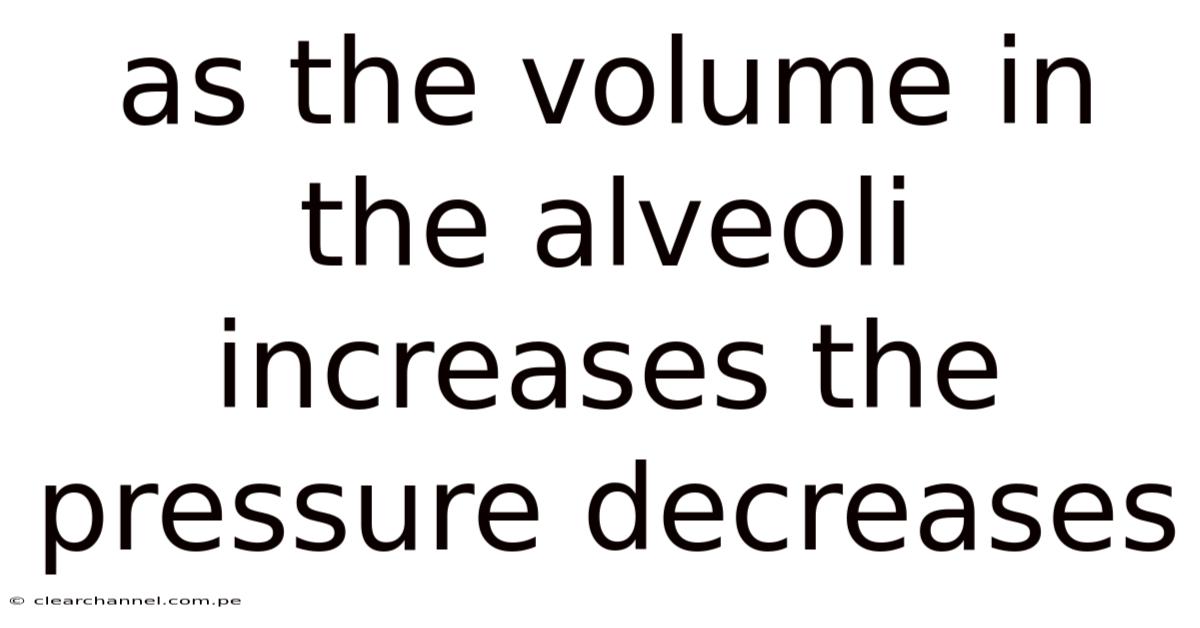 The statement as the volume in the alveoli increases the pressure decreases is a direct biological application of Boyle’s Law, a foundational principle of gas physics. Formulated in the 17th century, this law establishes that for a fixed quantity of gas at a constant temperature, pressure and volume share an inverse relationship. When gas molecules are given more room to move, they strike the container walls less frequently, which lowers the overall pressure. Conversely, compressing the same gas into a smaller space increases collision frequency and raises pressure Not complicated — just consistent. That's the whole idea..