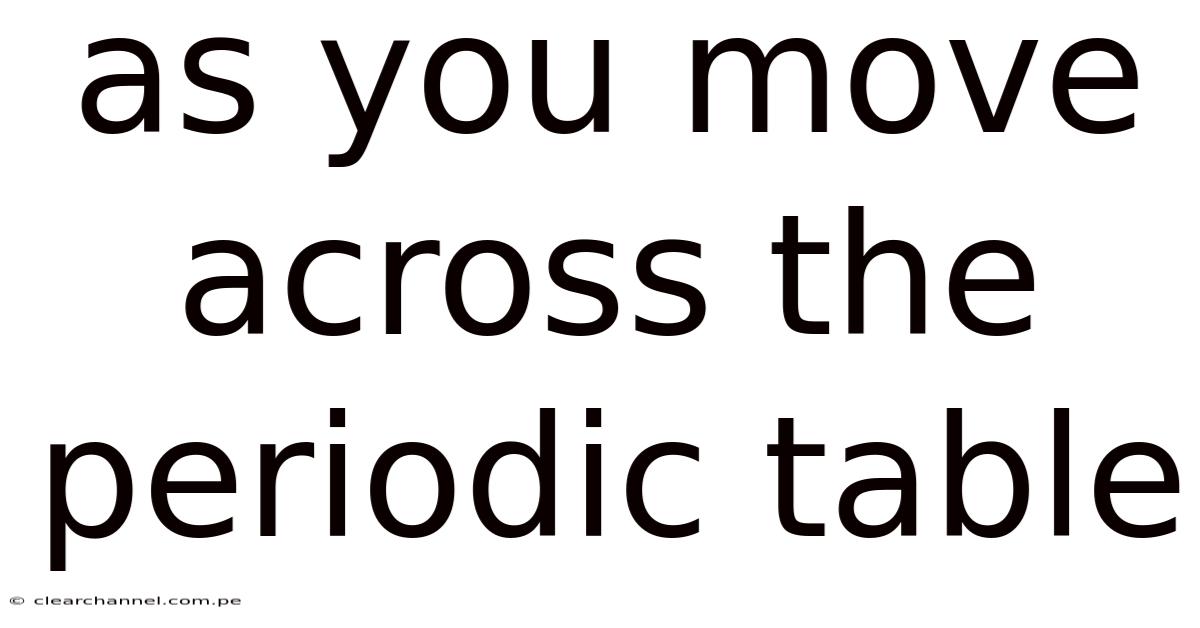 As you move acrossthe periodic table, atomic properties shift in predictable patterns, revealing trends in electronegativity, ionization energy, atomic radius, and metallic character. That's why this article explores those trends in depth, providing a clear roadmap for students, educators, and anyone curious about the underlying logic of the elements. By examining how each property changes from left to right, you will gain a solid foundation for predicting chemical behavior and understanding the organization of matter Not complicated — just consistent..