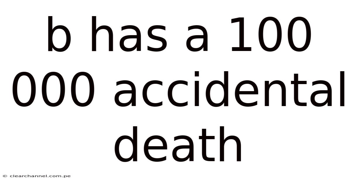 b has a100 000 accidental death – a stark figure that demands attention, analysis, and action. This number represents more than a statistic; it reflects lives cut short by preventable incidents, systemic gaps, and societal oversights. Understanding the breadth of this crisis, the contexts in which it occurs, and the pathways to mitigation can empower communities, policymakers, and individuals to transform tragedy into progress Most people skip this — try not to. Worth knowing..