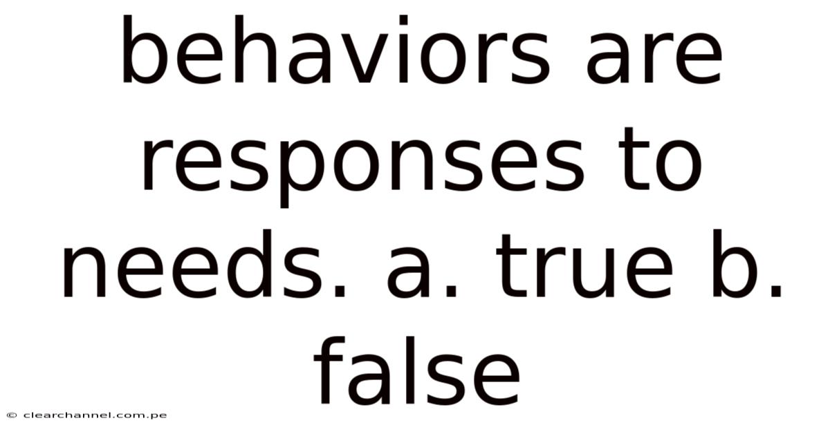 Behaviors Are Responses To Needs. A. True B. False