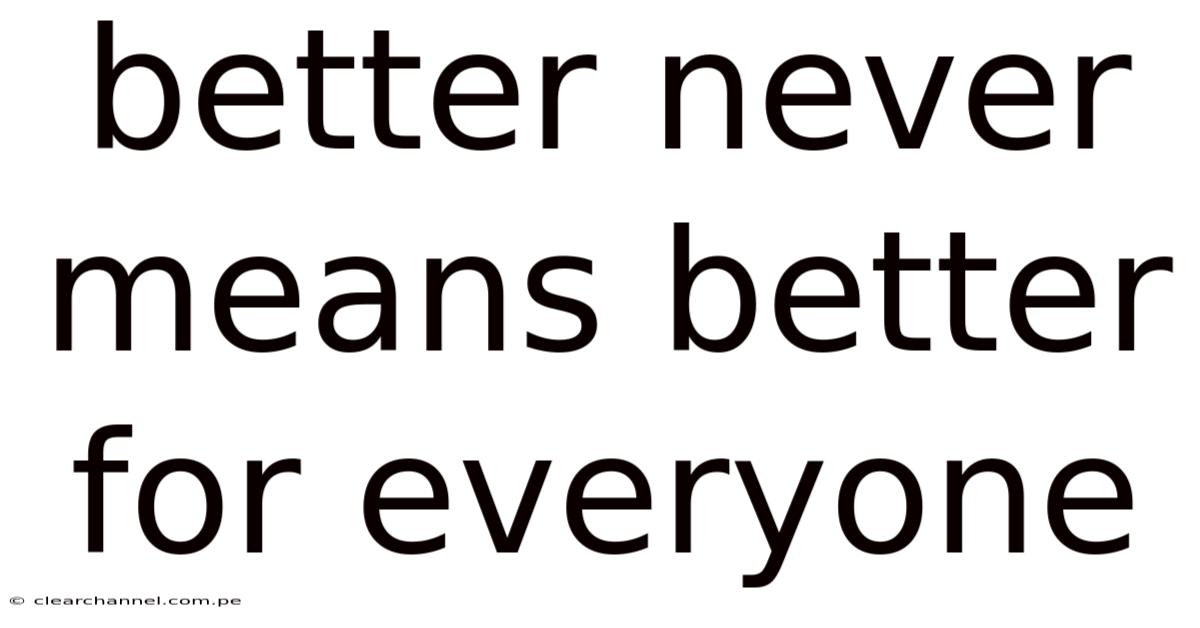 Understanding the phrase "better never means better for everyone" is crucial for grasping the complexities of decision-making and the impact of choices on diverse communities. This concept challenges us to rethink our assumptions about what constitutes improvement and encourages a deeper reflection on the consequences of our actions. In this article, we will explore the nuances behind this idea, highlighting why it is essential to consider the broader implications of what we consider "better."