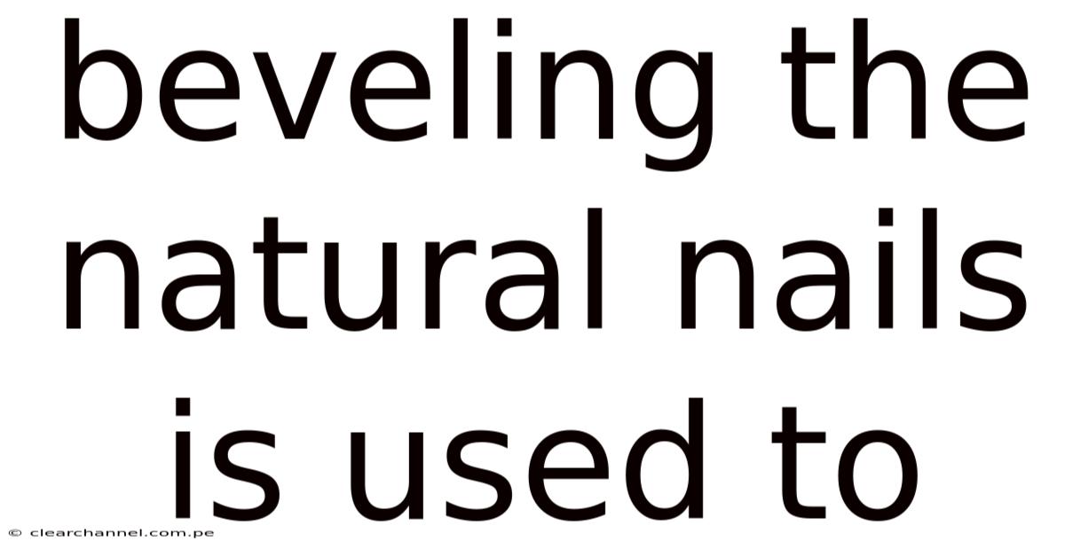 Beveling the natural nails is used to create a stronger foundation for nail enhancements, improve adhesion, and prevent lifting. On the flip side, this essential nail preparation technique involves filing the free edge of the natural nail at a specific angle to create a slight slope or "bevel" rather than leaving it flat. Beveling serves multiple purposes in both natural nail care and artificial nail applications, making it a fundamental skill for nail technicians and enthusiasts alike And it works..
