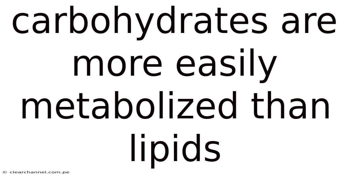 Carbohydrates Are More Easily Metabolized Than Lipids: A Closer Look at Metabolic Efficiency