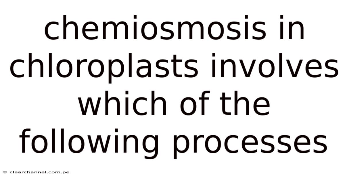 Chemiosmosis in chloroplasts involves a series of interconnected processes that are essential for the production of ATP during photosynthesis. Which means this mechanism is a cornerstone of the light-dependent reactions, where light energy is converted into chemical energy. Understanding which processes are involved in chemiosmosis requires a look at the flow of electrons, the generation of a proton gradient, and the synthesis of ATP And that's really what it comes down to..