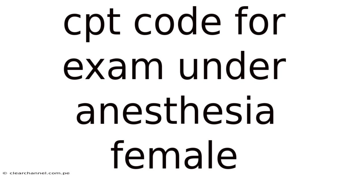 Understanding the CPT code for exams under anesthesia in female patients is crucial for healthcare professionals aiming to ensure accurate documentation and compliance. This topic is vital for medical practitioners, students, and administrators who need to grasp the nuances of billing and clinical procedures. Let’s dive into the details, breaking down the essentials in a clear and engaging manner That alone is useful..