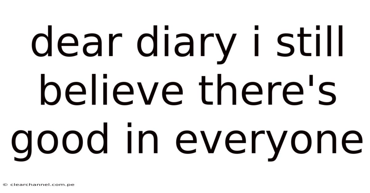The quiet certainty that beneath the surface of life’s complexities lies an inherent kindness, a quiet force that has quietly shaped countless lives. This belief, though deeply personal, carries universal resonance, inviting us to reflect on the nature of humanity itself. To dwell in the shadows of cynicism is to overlook the very essence of what makes us human—a tapestry woven from shared struggles, unspoken understandings, and unyielding empathy. That said, it is within this context that the concept of "Dear Diary I Still Believe There's Good in Everyone" emerges not as a dismissal of reality, but as a gentle invitation to see beyond the surface noise and toward the quiet, enduring light that persists even in the darkest moments. In a world often dominated by judgment, by comparison, by the relentless pursuit of perfection, there exists a profound truth that remains undimmed: within every individual resides a spark of goodness, a capacity for compassion, and a capacity for growth. This perspective challenges us to cultivate a mindset that acknowledges both the imperfections and the potential within every person, recognizing that goodness is not a fixed trait but a dynamic force shaped by context, choice, and connection Simple as that..