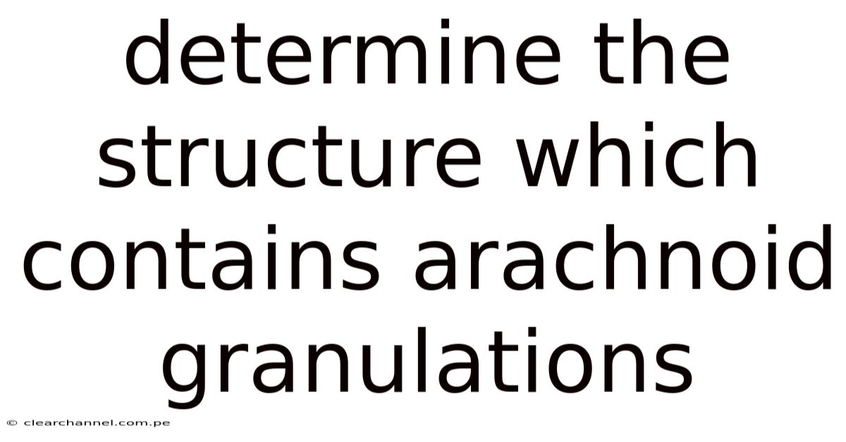 Determining the structure that contains arachnoid granulations involves a systematic approach: locating the superior sagittal sinus, identifying characteristic protrusions, confirming their one‑way valve function, and ruling out mimicking pathologies. Day to day, these granulations are essential for maintaining CSF homeostasis, and their dysfunction can lead to significant neurological disorders. By understanding their anatomy, physiology, and clinical relevance, clinicians and researchers can better diagnose and manage conditions related to CSF dynamics.