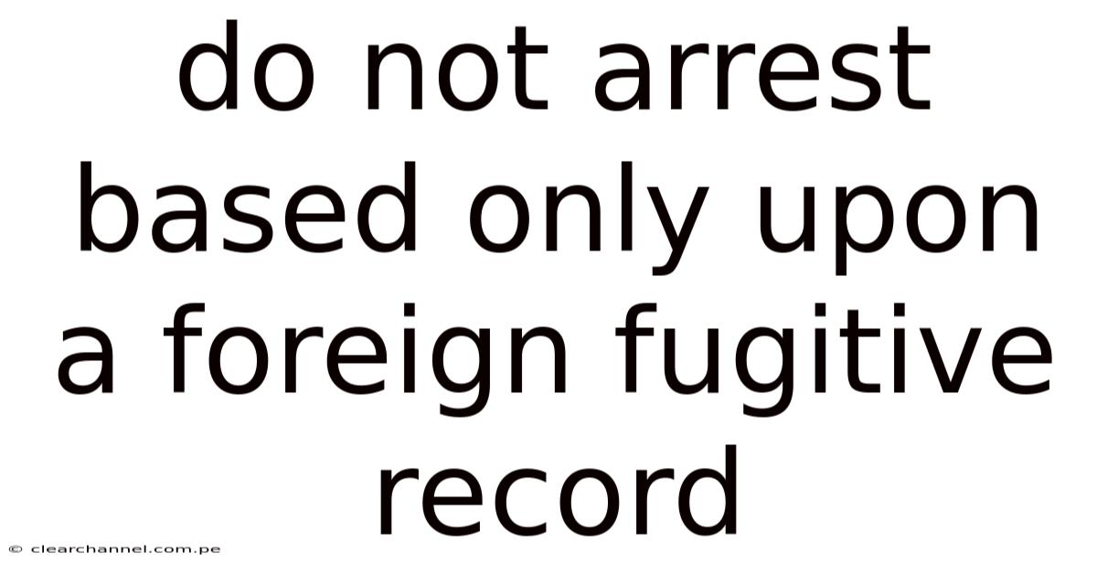 Do Not Arrest Based Only Upon A Foreign Fugitive Record