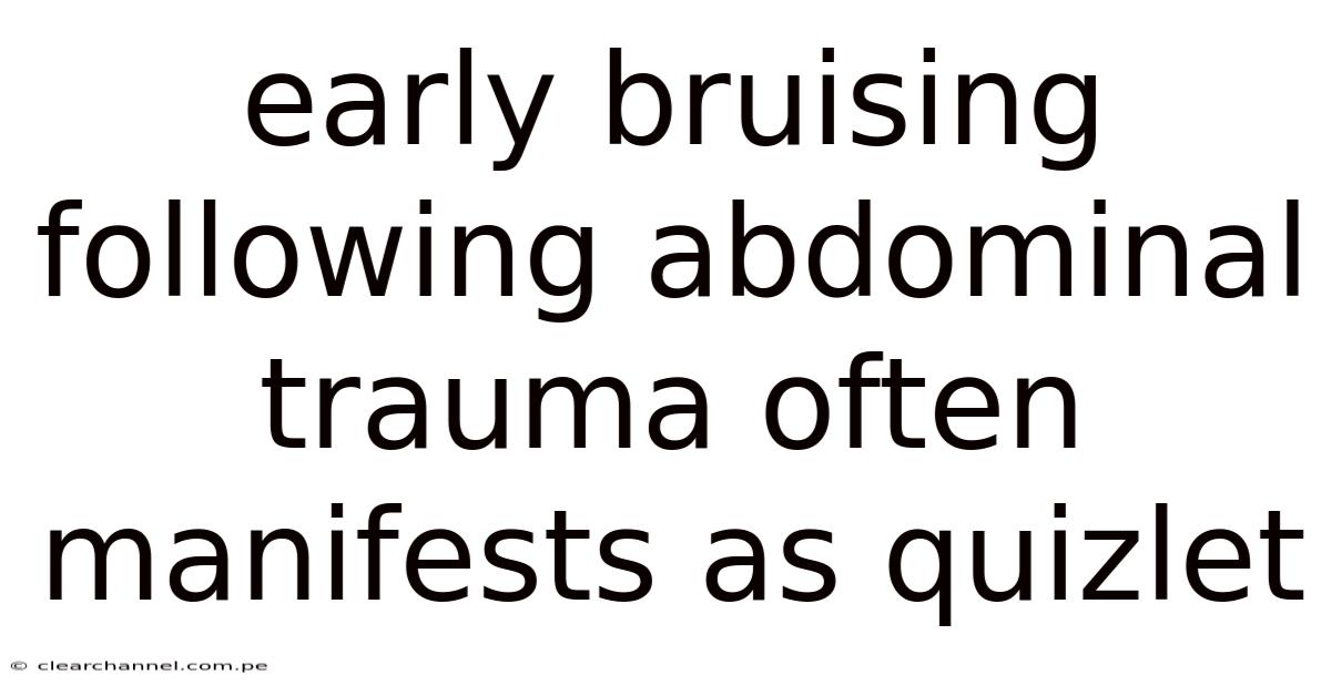 Early bruising following abdominal trauma often manifests as a critical sign of underlying injury, requiring immediate medical attention. Bruising, or ecchymosis, occurs when blood leaks into surrounding tissues after a blood vessel is damaged. In the context of abdominal trauma, this discoloration can signal serious conditions such as internal bleeding, organ rupture, or vascular injury. Understanding the significance of early bruising is essential for timely diagnosis and intervention, as delays can lead to life-threatening complications. This article explores the mechanisms behind early bruising in abdominal trauma, its clinical implications, diagnostic approaches, and the role of educational tools like Quizlet in reinforcing medical knowledge.