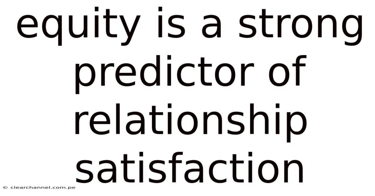 The foundation of any successful relationship often hinges on the balance of fairness and mutual respect between partners. So equity, in this context, refers to the perception of fairness in how partners distribute resources, efforts, and emotional investments within the relationship. Plus, among the many factors that contribute to relationship satisfaction, equity stands out as a critical predictor. Practically speaking, when individuals feel that their contributions are valued equally and that the relationship is balanced, they are more likely to experience contentment and long-term happiness. This article explores why equity is a strong predictor of relationship satisfaction, how it influences emotional and psychological well-being, and the practical steps couples can take to grow equity in their partnerships Not complicated — just consistent. No workaround needed..