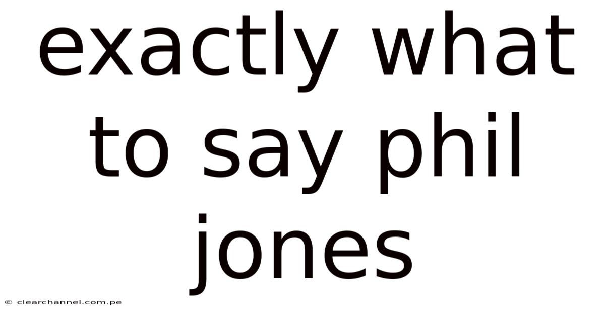 Exactly What to Say Phil Jones: Decoding the Power of Communication in Sports and Beyond