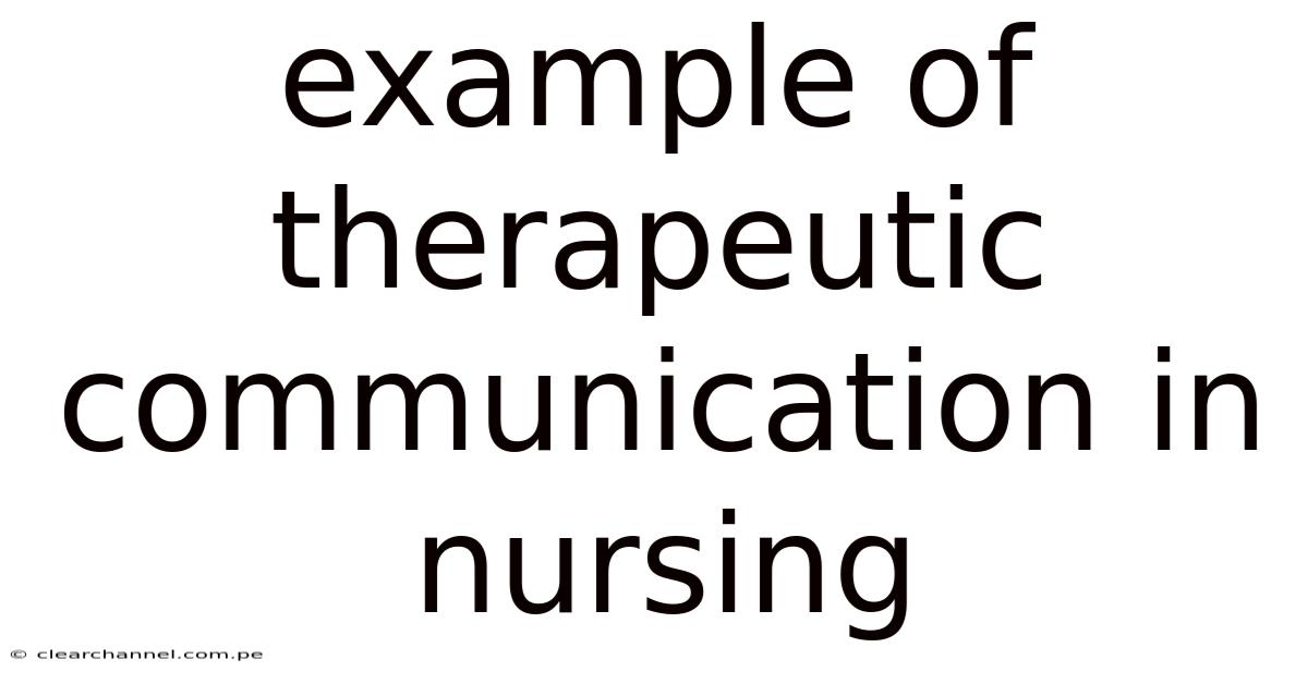Example of Therapeutic Communication in Nursing: Building Trust and Enhancing Patient Care