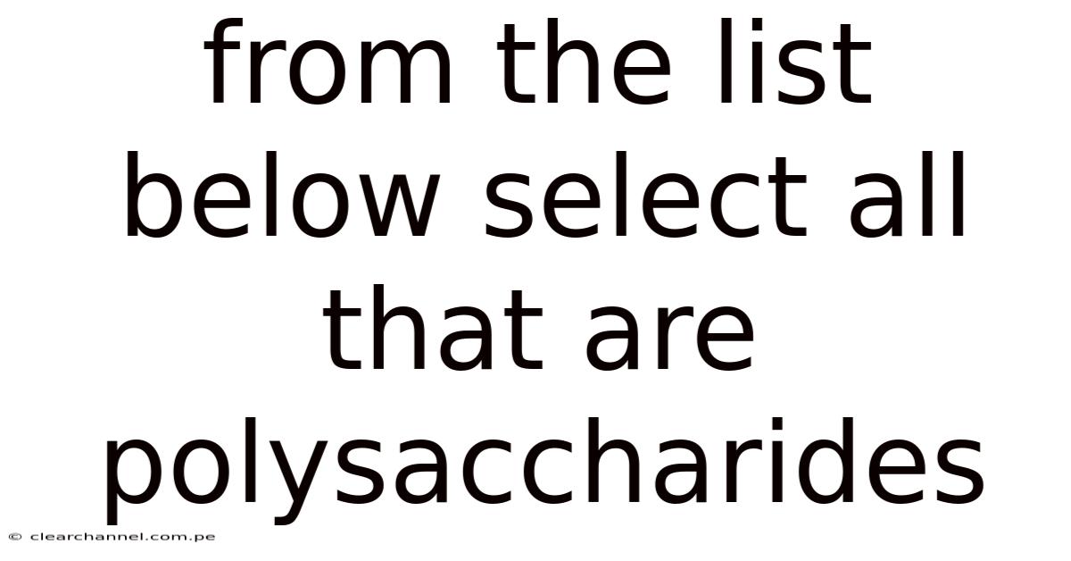 I notice you've asked me to identify which items from a list are polysaccharides, but the actual list of items hasn't been included in your request. To create an accurate and helpful article, I would need to know which specific substances or compounds you'd like me to evaluate The details matter here..