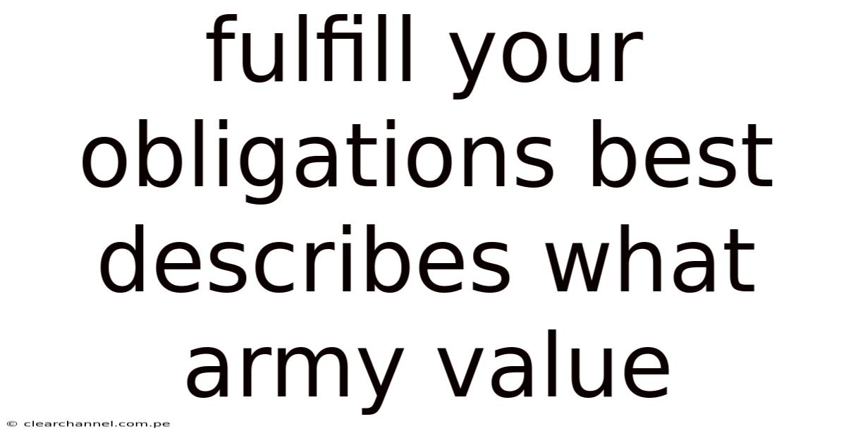 When we discuss the phrase "fulfill your obligations," we are describing the essence of Duty, one of the most fundamental Army Values. In the context of military service, duty is not merely a job description or a set of tasks to be completed; it is a profound moral commitment to perform one's obligations to the best of one's ability, regardless of the circumstances. Understanding how to fulfill your obligations is critical for anyone seeking to understand the discipline, reliability, and selfless service that define a professional soldier It's one of those things that adds up. Worth knowing..