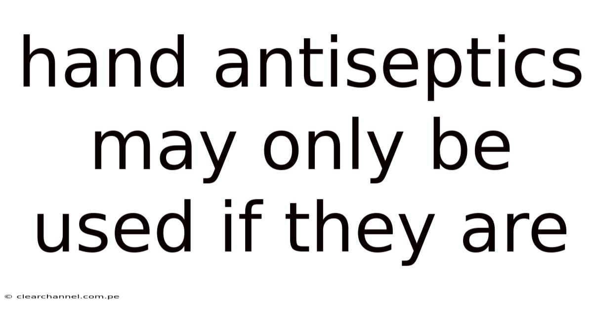 Hand Antiseptics May Only Be Used If They Are Properly Formulated, Effectively Tested, and Correctly Applied