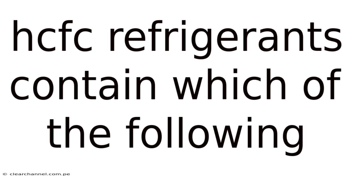 Hcfc Refrigerants Contain Which Of The Following