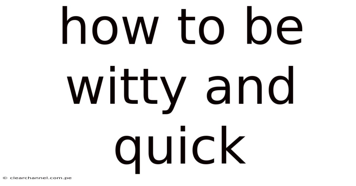 Being witty and quick is a skill that can enhance your social interactions, boost your confidence, and make you a more engaging conversationalist. Consider this: whether you're looking to impress at a party, excel in a debate, or simply enjoy more dynamic exchanges with friends and colleagues, mastering the art of quick thinking can be incredibly rewarding. This article will guide you through understanding what it means to be witty, provide practical steps to improve your quick thinking, and offer tips on how to integrate wit into your daily life That alone is useful..