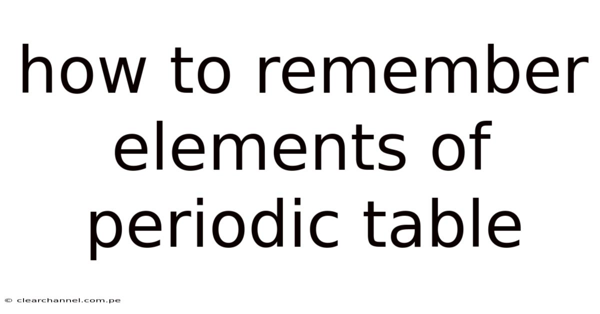 The periodic table is more than a chart of symbols; it’s a roadmap of the building blocks that compose everything around us. Worth adding: Remembering the elements can feel daunting, but with the right strategies you can turn a massive memorization task into a series of manageable, meaningful steps. This guide explores proven techniques—visual mnemonics, storytelling, spaced repetition, and contextual learning—to help you internalize the names, symbols, and positions of the elements while also deepening your understanding of their properties and relationships.